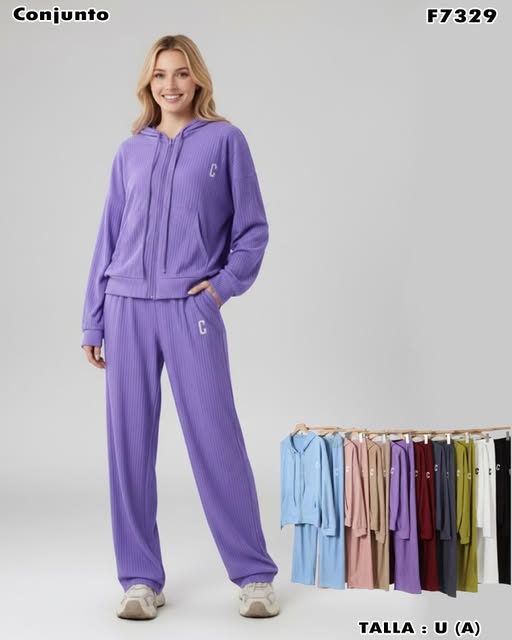 F7329 – Conjunto casual acanalado con cierre y capucha