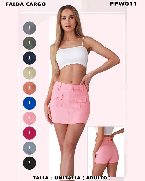 ✔️ Diseño corto con bolsas frontales tipo cargo