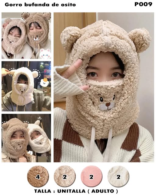 ✔️ Gorro bufanda tipo osito con orejitas 🧸