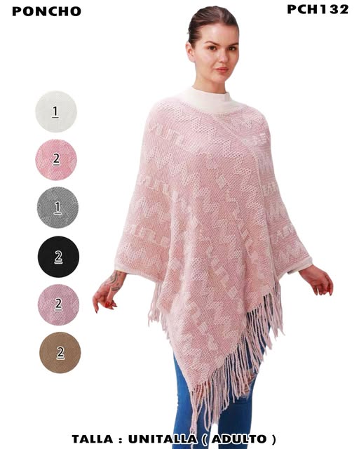 PCH132 – Poncho Ligero con Flecos y Tejido Zigzag