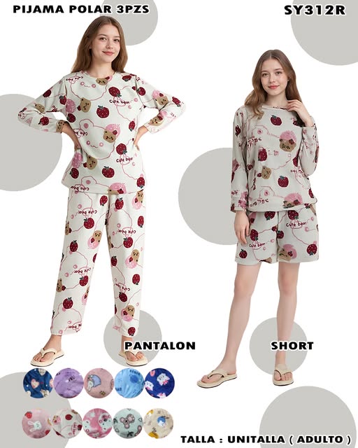 ✔️ Pijama térmica 3 piezas: blusa + pantalón + short 🩷