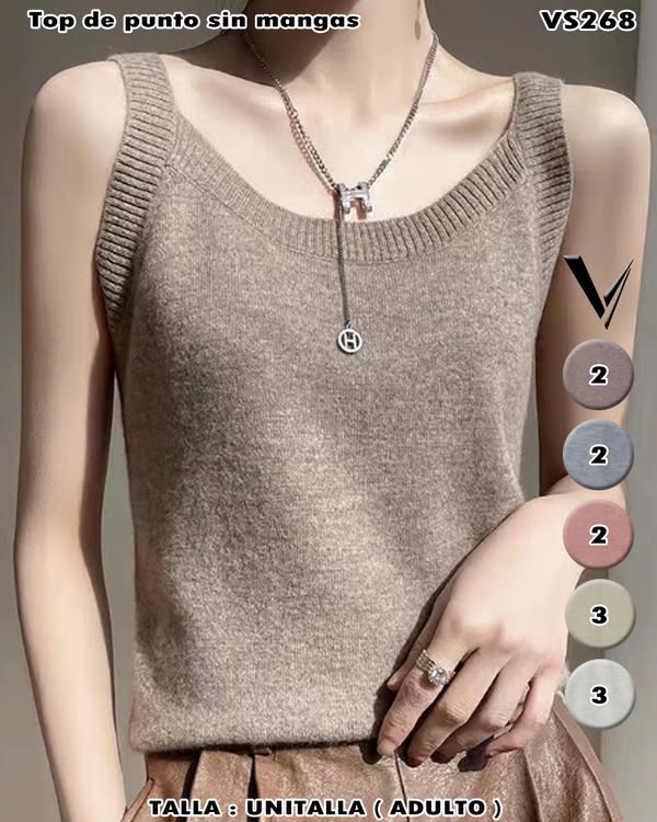 ➡️Top suave y elegante de punto sin mangas, con escote cuadrado. Ideal para un look sofisticado y cómodo.